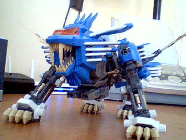 It's apperance is different to that of the normal blade liger. It has a sharper look to it, the head is a little more narrow, with razor sharp fangs that hurt your fingers. The paws have a better shape, and each toe moves individually. The front and back legs have metal springs on them, as well as some nice gold & silver parts added on to look like it could all come together to form a real working leg. Yet these pieces are all merely for show, that's just how detailed the Kotos' are.
